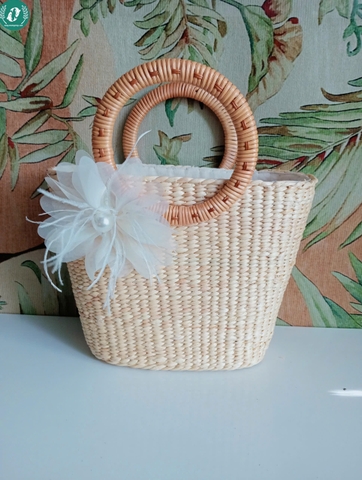 Được làm từ chất liệu lục bình tự nhiên, trải qua quy trình sản xuất thủ công tỉ mỉ, từng sợi lục bình được lựa chọn kỹ càng, đảm bảo chất lượng và độ bền của sản phẩm. Quá trình đan lát hoàn toàn thủ công, tạo nên những đường nét tinh tế, mềm mại, thể hiện sự khéo léo và tâm huyết của người nghệ nhân. Mỗi chiếc túi đều mang một nét riêng, không chiếc nào giống chiếc nào, tạo nên giá trị độc đáo của sản phẩm.